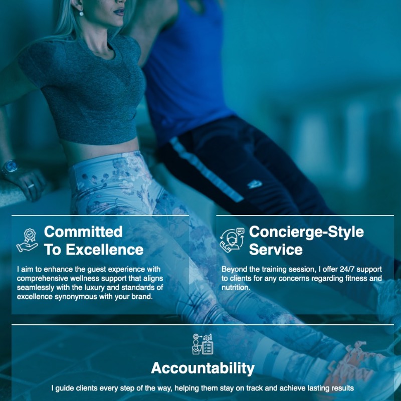 I believe in delivering a truly personalized fitness experience — one that feels exclusive, intentional, and results-driven. My concierge-style approach means every session is tailored to your goals, your lifestyle, and your body, ensuring that fitness fits seamlessly into your life — not the other way around.
