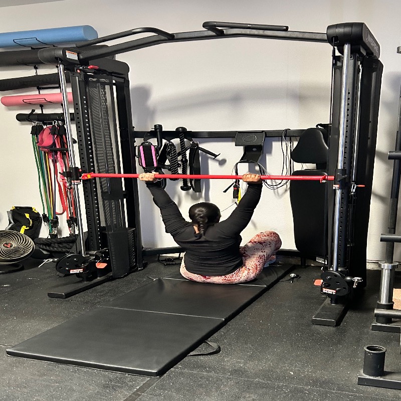 Surving breast cancer client who worked on strength training to help from the chemotherapies. Never failed to try her very best and always smile!